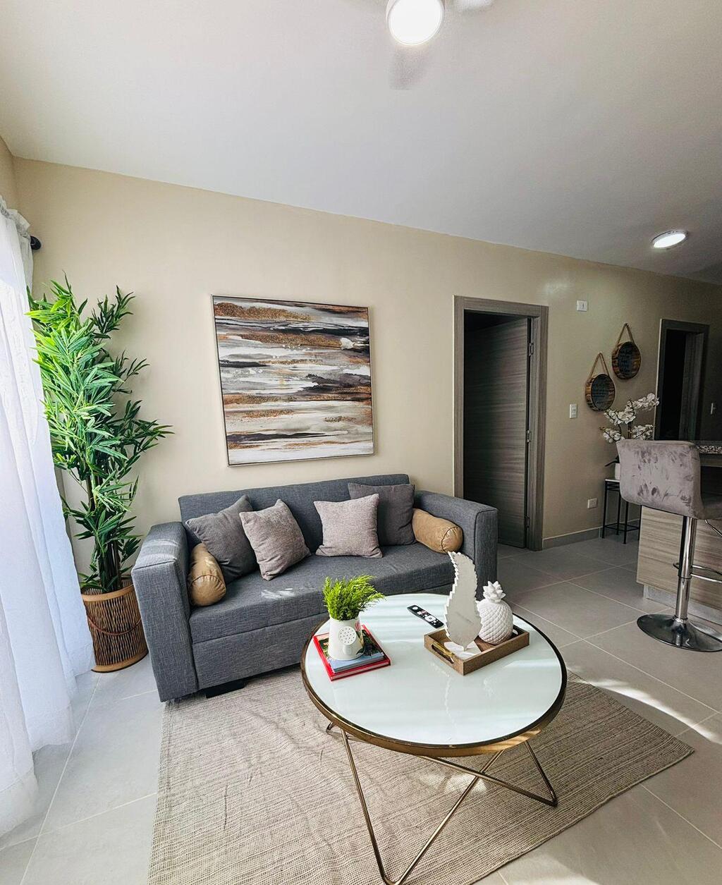 Acogedor apartamento de 55.12 m² en primer nivel, amueblado, con una distribución práctica para vivir o invertir. Dispone de 1 habitación amplia y 2 baños, sala–comedor integrada y cocina funcional. Ubicado en un residencial de alta demanda por su cercanía a servicios, comercios y rápidas conexiones hacia Downtown y el Boulevard Turístico del Este.